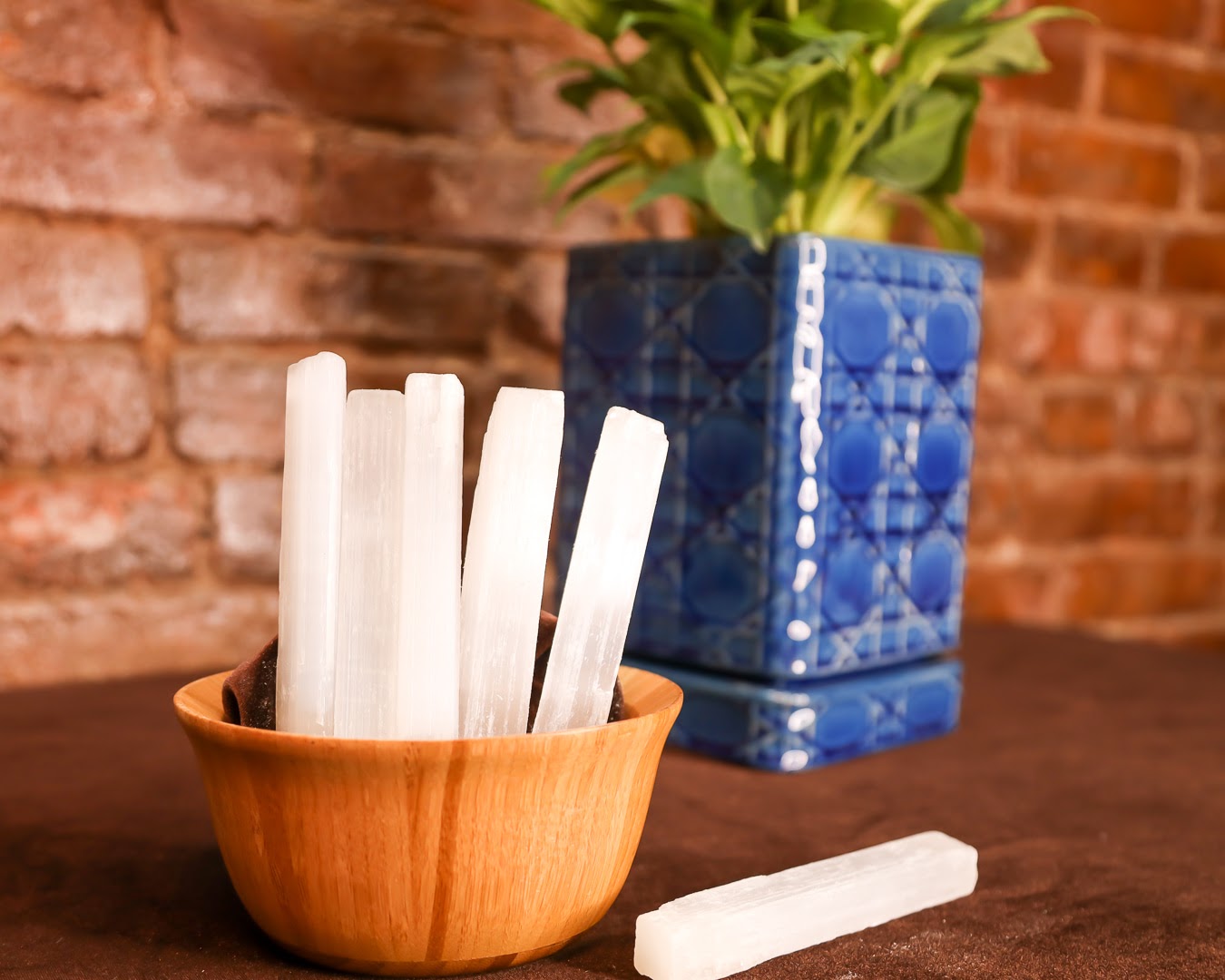 Selenite is said to be a powerful healing crystal that promotes peace and calm, mental clarity, and well-being. It's also believed by some that this crystal can remove negative energy and help you connect to higher realms. renowned for their cleansing and healing abilities, and can help to clear negative energy from the surrounding environment. Selenite also has calming properties which makes it ideal for meditation or spiritual work. Selenite is self-cleansing and can heal and cleanse other crystals in its’ environment.